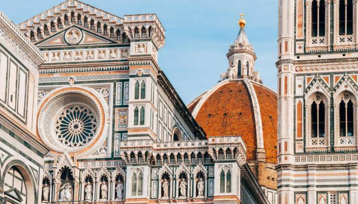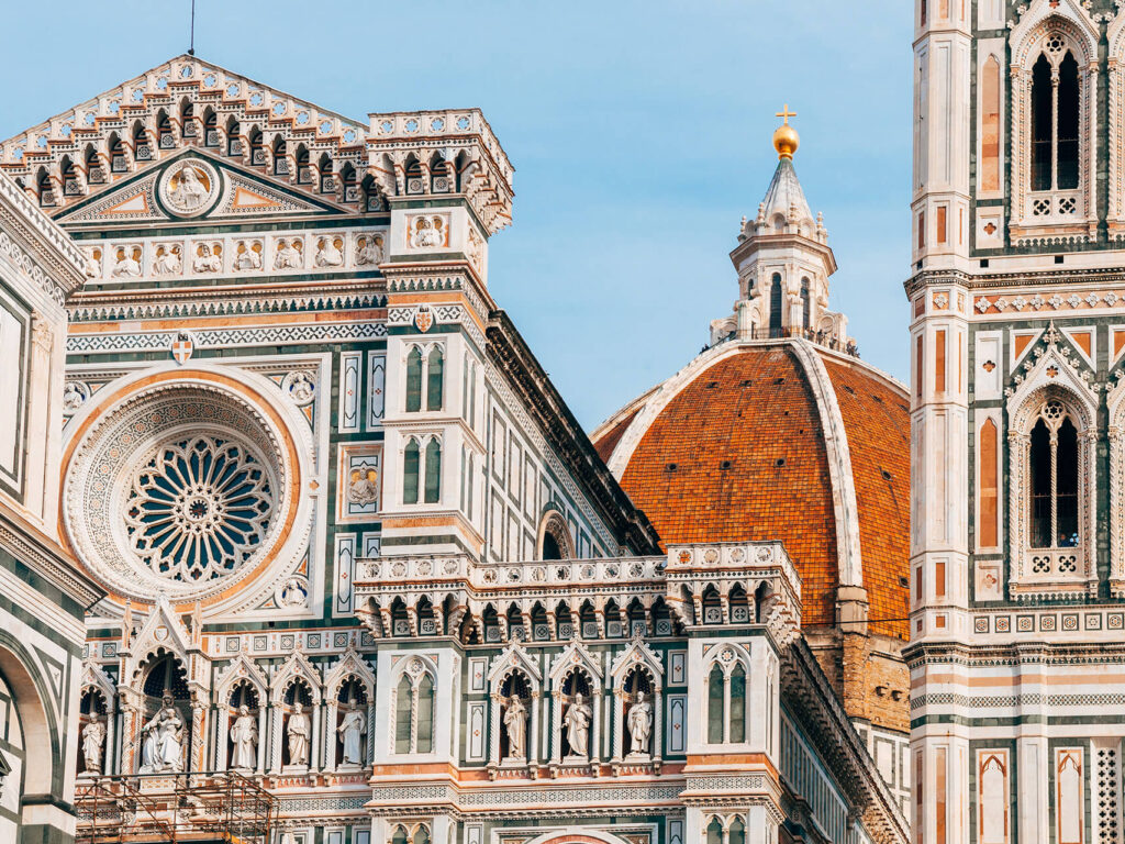 Meet your private guide for your walking tour of Florence. Begin the day at the Academy of Fine Arts to view the magnificent “David” by Michelangelo, this stunning statue attracts millions of art lovers throughout the world. Continue walking through the city to arrive at the Duomo the main Cathedral of Florence, with its 227 Bell Towers by Giotto which dominates the Florence skyline. See the nearby Baptistry of Florence with its incomparable Bronze Doors considered by Michelangelo to be the gates of Paradise. Walk onto to Signoria Square and the imposing Palazzo Vecchio the seat of the Florentine government. View also the beautiful Neptune Fountain and nearby Loggia with its numerous statues by famous artists. Walk to the elegant Ponte Vecchio and visit some of its Goldsmith shops. Continue to the Church of Santa Croce to see the resting place of famous Italians such as Michelangelo, Galileo, Dante Aligheri and Machiavelli. Overnight at the hotel in Florence. (B)