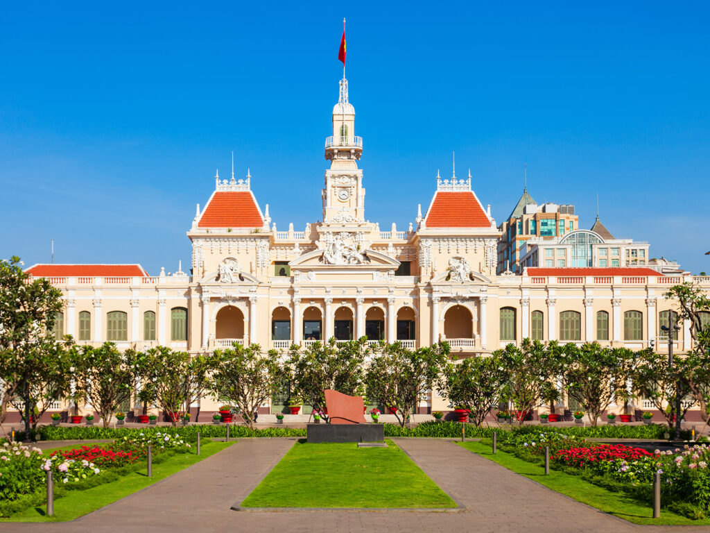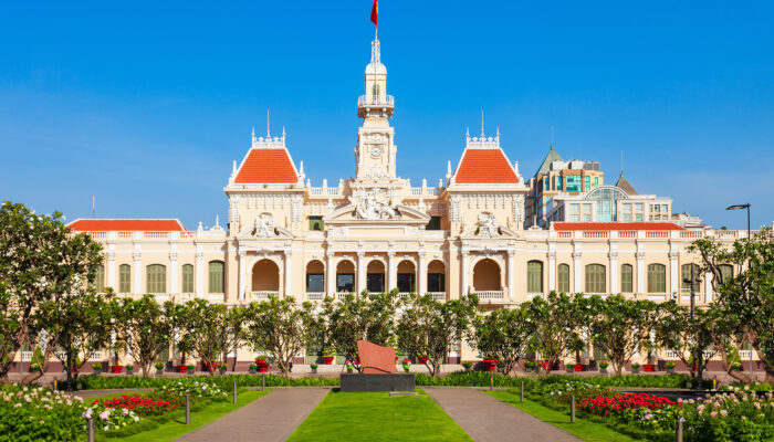 Morning depart by private car to the legendary Cu Chi Tunnels, a 125-mile-long underground network; this tunnel system stretched to the Cambodian border. Return to the city and visit the classic European-style landmarks such as the Notre Dame Cathedral, the Opera House (view from outside only), the ornate City Hall and the art-deco Post Office. Continue to the Reunification Palace and the War Remnants Museum. Free time to browse the stalls in the bustling Ben Thanh Market before returning to the hotel. (B)