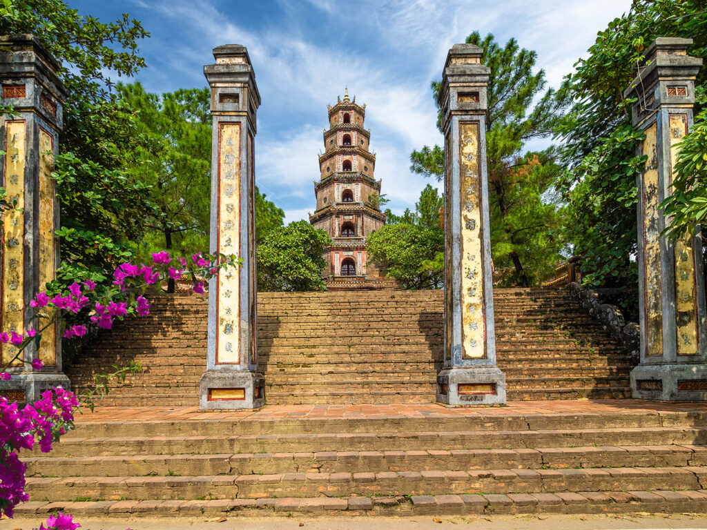 Hue is a city of history and culture in central Vietnam. Start your discovery of Hue with a relaxing boat trip journey on the Perfume River; visit Thien Mu Pagoda – one of the oldest pagodas and the most famous structure in the country. Depart to visit the ruins of the Royal Imperial City and the Imperial Citadel. Drive back to the city past the striking Flag Tower, to the imposing Ngo Mon Gate. Enter into an area of spacious courtyards and serene lotus ponds, and visit the Hue Royal Antiquities Museum. Continue to the Imperial Tomb of Tu Duc – the longest reigning Vietnamese emperor, designed and built this elegant tomb during his lifetime. Also visit the Garden House before returning to your hotel in Hue. (B)