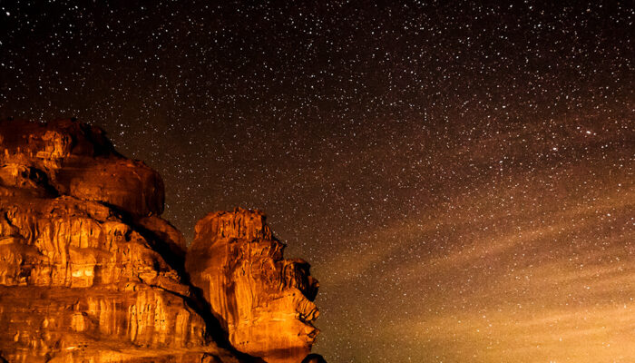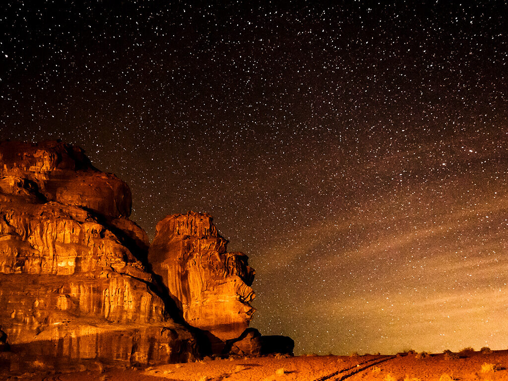 Optional: Stargazing – Wadi Rums known for its clear night sky, is ideal for stargazing. This guided group activity allows you to learn about the universe we live in. Witness the magnificence of the skies and heavens, with powerful telescopes, bringing you closer to the hidden wonders of the stars and planets ($40 per person, must be pre-booked).