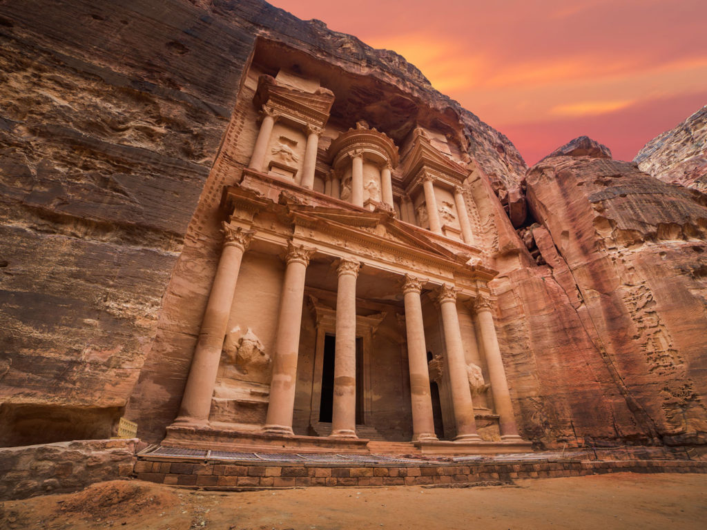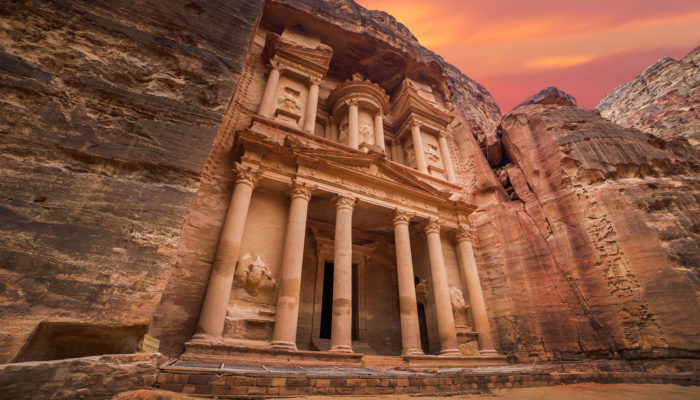 Meet your guide and driver this morning; depart for Mt. Nebo, highest point of the Moabite mountain range, offering a remarkable view of the Jordan Valley and the Dead Sea. Then proceed to Madaba, home to some of the finest Byzantine mosaics in the world. View the 6th century mosaic map of the Holyland. After lunch, visit the magnificent crusader castle of Kerak before continuing on to Petra. Dinner and overnight in Petra. (B.L.D.)