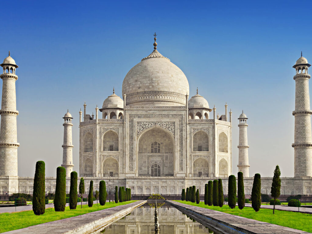 After breakfast, visit the impressive Agra Fort, a majestic symbol of Mughal dynasty’s power and resilience. The fort’s colossal double walls rise 20 m in height and measure 2.5 km in circumference, offering breathtaking views of the Yamuna River and Taj Mahal in a distance. Continue tour to the world-famous astounding Taj Mahal (closed Friday), built by Shah Jahan in 1630 for his queen Mumtaz Mahal as a mausoleum. It is an architectural marvel in white marble which took about 17 years to build. (B)