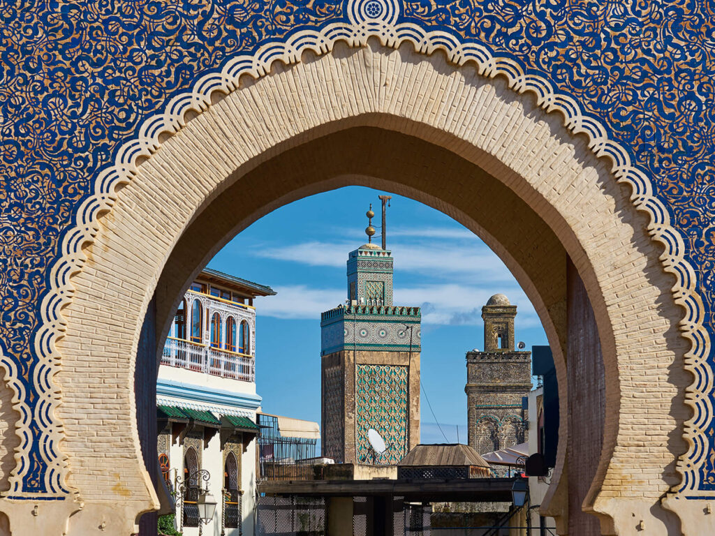 After breakfast, depart for Fes, via Volubilis and Meknes. Discover Volubilis, the amazing Roman archaeological site. From this tranquil site you can view the Holy City of Moulay Idriss. Meknes is one of the Imperial Cities as it was built and became prosperous in the 17th century under the rule of a powerful sultan Moulay Ismail. See the Bab Mansour Gate. Arrive Fes in the late afternoon. Balance of the day is at leisure. Overnight at your hotel. (BB)