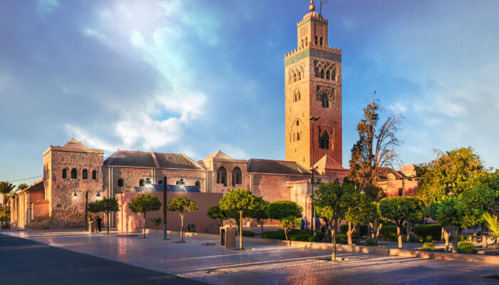 Morning city sightseeing of Marrakech “the red city of Morocco”. View Koutoubia Tower, landmark of the city.  Continue to the Bahia Palace built in the 19th century, consisting of rooms decorated with stunning paintings and mosaics. Visit a spice workshop and discover the legendary souks, craft markets, and wool-dyer’s quarters.  Discover the secrets of Jemaa El Fna Square, the beating heart of Marrakech a permanent display of folklore, magicians, and storytellers. Here comes the snake-charmers, fortune-tellers, potion vendors, Gnaoua musicians, henna artists, monkey performers, acrobats and much more. Return to hotel for overnight (BB)